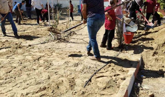 Okul bahçesinde fidan diktiler
