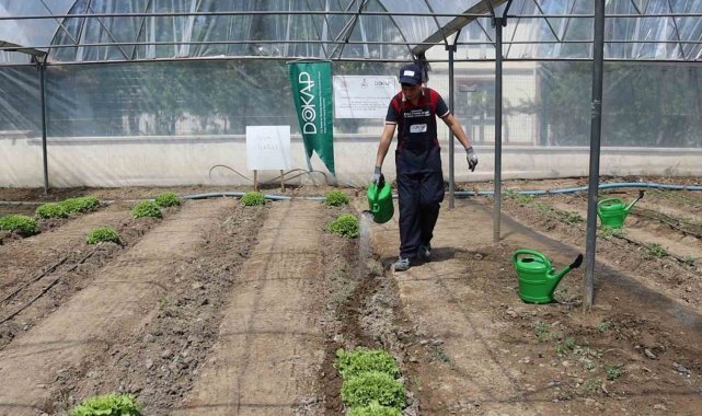 Okul bahçesinde kurulan serada öğretmen ve öğrenciler kuşkonmaz yetiştirecek