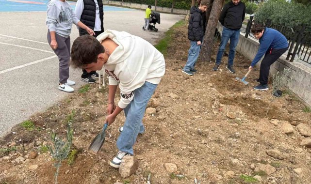 Okul bahçesinde gerçekleştirilen program kapsamında 'Her çocuğun bir ağacı var' projesi çerçevesinde 60 adet zeytin fidanı toprakla buluşturuldu. Kökleri geçmişi, dalları ise geleceği temsil eden zeytin ağacı, barış ve sürdürülebilir yaşamın simgesi olarak öğrenciler tarafından dikildi.