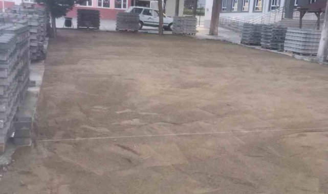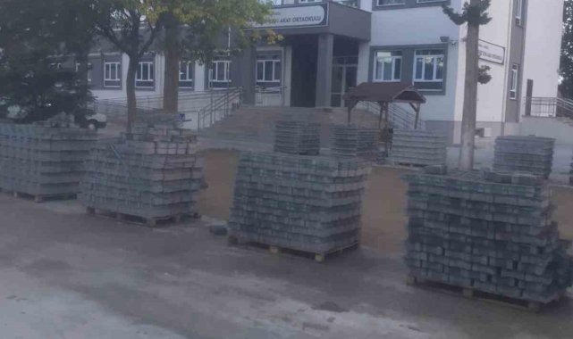 Manisa'nın Sarıgöl ilçesi Aşağıkoçaklar Mahallesinde yeniden inşa edilerek eğitim öğretime başlayan Şehit Esin Akay Ortaokulunun bahçesinde parke döşeme çalışmaları başladı.