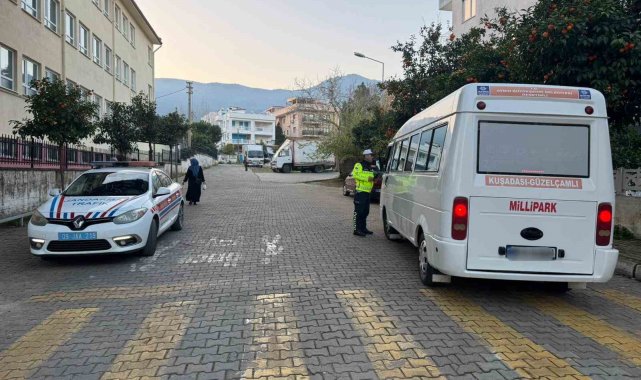 Aydın'da ikinci eğitim öğretim döneminin başlaması ile birlikte jandarma ekipleri de okul çevrelerinde denetim gerçekleştirdi. Servisleri denetleyen ekipler, öğrencileri de trafik kuralları konusunda bilgilendirdi.