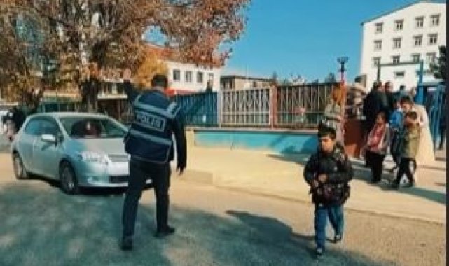 Okulların giriş ve çıkış saatlerinde, Çocuk Şube Müdürlüğü ile Trafik Tescil ve Denetleme Şube Müdürlüğü ekipleri öğrencilerin güvenliği için okul yollarında görev başında.