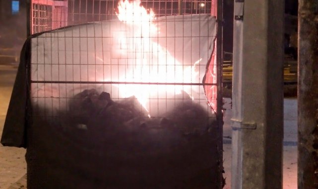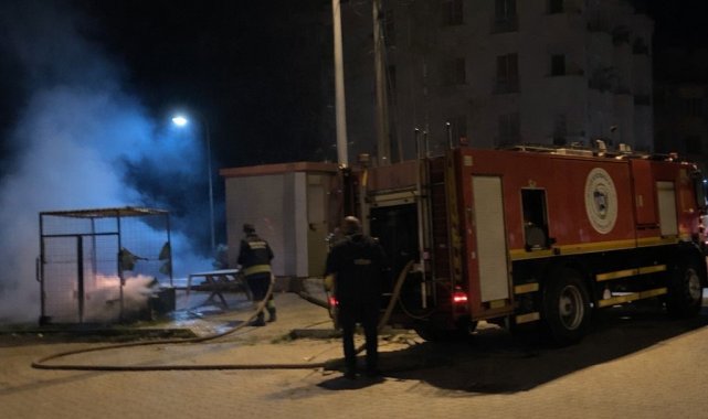 Okul karşısındaki konteynerden alevler yükseldi