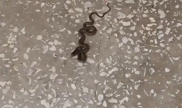 Sabah saatlerinde derse girmek üzere koridorda ilerleyen öğrenciler, yerde hareket eden bir yavru yılan fark etti. Durumu hemen öğretmenlerine bildiren öğrencilerden kimi eline almak istedi. Öğretmenin ikazıyla yılandan uzaklaşan öğrencilerden kimi ise korktu.