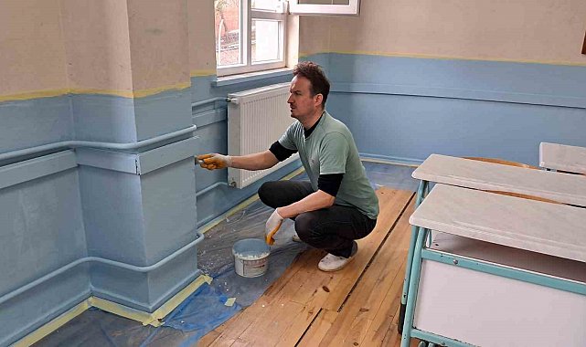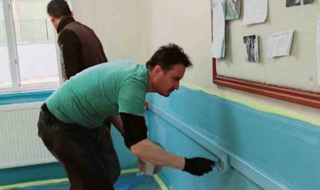 Bursa'nın İznik ilçesinde bir köy okulunun müdürü ve yardımcısı okulu boyadı.