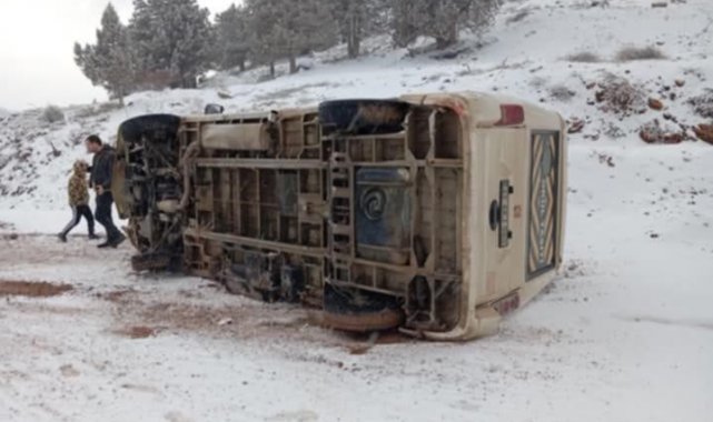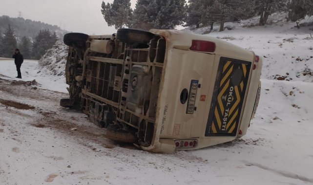 Mersin Erdemli'de öğrencileri taşıyan servis minibüsü karlı ve buzlu yolda kayarak devrildi. Korku dolu anlar bir öğrencinin cep telefonu kamerasına yansıdı.