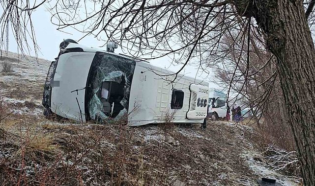 Sivas'ta öğrencileri taşıyan okul servisi yan yattı. Araç içerisindeki 14'ü öğrenci 15 kişi yaralandı.