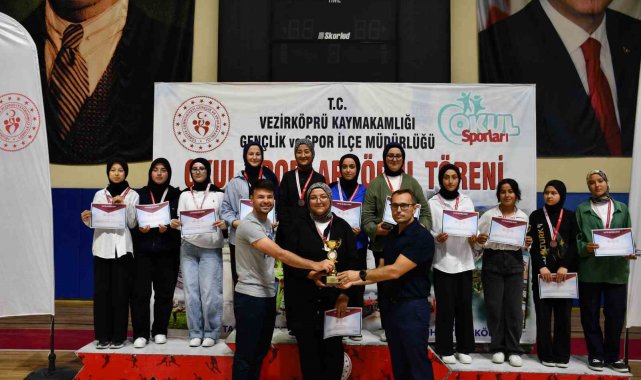 Samsun'un Vezirköprü ilçesinde 2024-2025 eğitim-öğretim yılı okul sporları kapsamında düzenlenen müsabakalarda dereceye giren öğrencilere yönelik ödül töreni gerçekleştirildi. Gençlik ve Spor İlçe Müdürlüğü Kapalı Spor Salonu'nda düzenlenen törende, farklı branşlarda yarışan 42 takımdan 452 öğrenci, elde ettikleri başarılar dolayısıyla madalya ve kupayla ödüllendirildi.