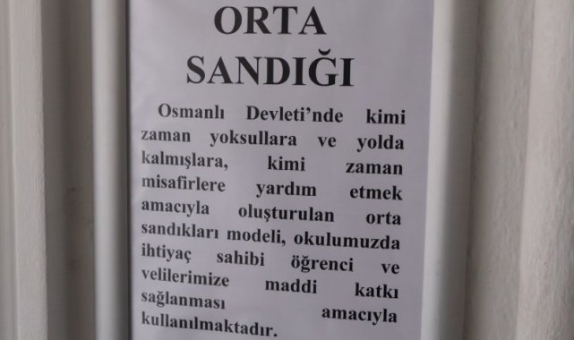 Okulda öğrencilerin kabullenme süreçlerini test eden ve her öğrenciye dayanışma ve yardımlaşma duygusunu aşılamayı hedefleyerek yola çıktıklarını aktaran okul müdürü Hakan Vahapoğlu, "Ahiliğin en önemli yönü ve çalışma şekli olan Orta Sandığı uygulamasını okulumuzda başlattık. Buradaki ana amacımız öğrencilerimizin yardımlaşma duygusuyla birbirleriyle kaynaşması oldu. İhtiyaç sahibi arkadaşlarını öğrenciler kendileri tespit ediyor" şeklinde konuştu.