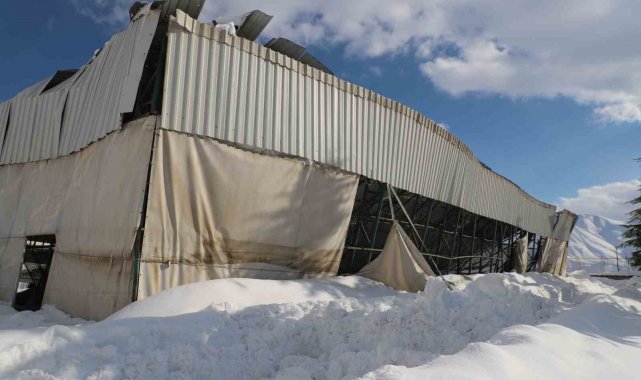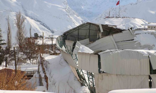 Hakkari Atatürk Anadolu Lisesi bahçesinde bulunan halı sahanın tavanı, etkisini sürdüren karın ağırlığına dayanamayarak çöktü.