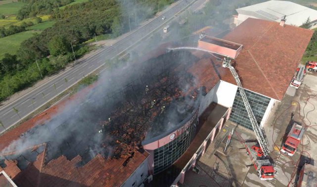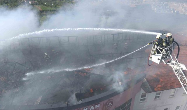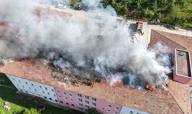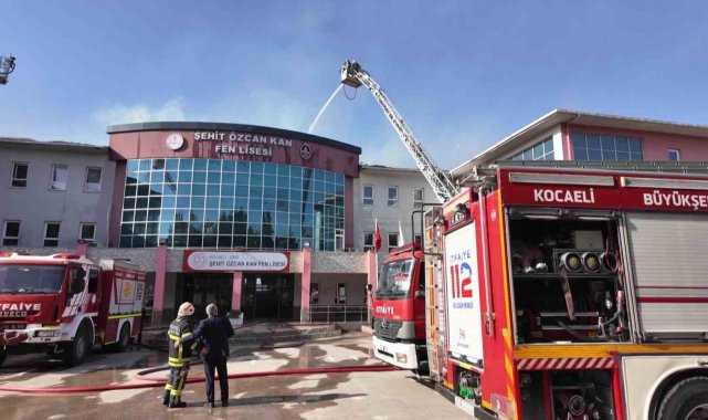 Kocaeli'nin İzmit ilçesinde bir lisenin çatısında çıkan yangın söndürüldü. Çatı kullanılamaz hale gelirken, okul havadan görüntülendi.