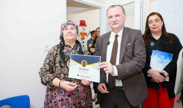 Okuma yazma kursunu tamamlayanlar belgelerini Başkan Balaban'dan aldı