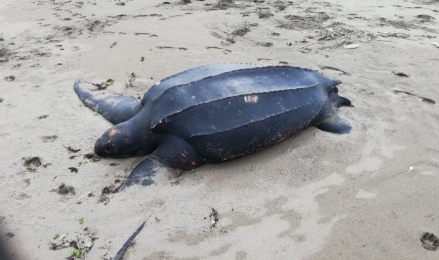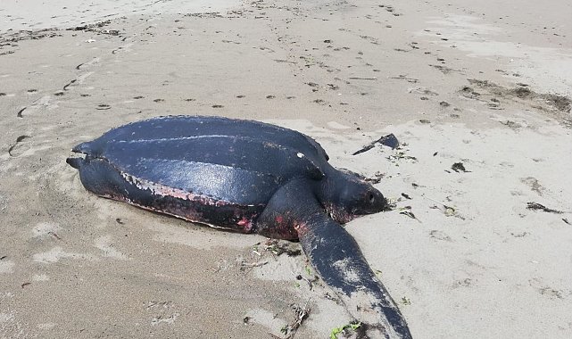 Pasifik, Atlas, Hint okyanuslarında ve Akdeniz'de görülen, dünyadaki en büyük sürüngenlerden biri olan ve 'şampiyon' olarak da adlandırılan deri sırtlı deniz kaplumbağası, ölü olarak Sakarya'nın Karasu sahilinde bulundu.