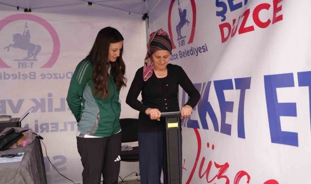 Düzce Belediyesi Gençlik ve Spor Hizmetleri Müdürlüğü'nün başlattığı "Ölç, Fark Et, Hareket Et" kampanyası kapsamında Millet Bahçesi'nde ücretsiz vücut analizleri yapılıyor. Vatandaşlar hem spor tesisleri hakkında bilgilendiriliyor hem de sağlıklı yaşama teşvik ediliyor.