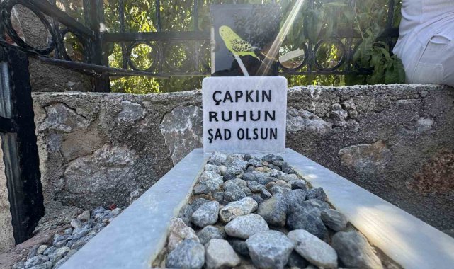 Çelik ailesinin yaklaşık 6 yıldır evlerinde beslediği muhabbet kuşu öldü. Ailenin kararı üzerine muhabbet kuşuna mermerden mezar yaptılar.