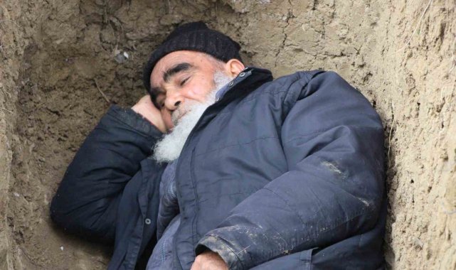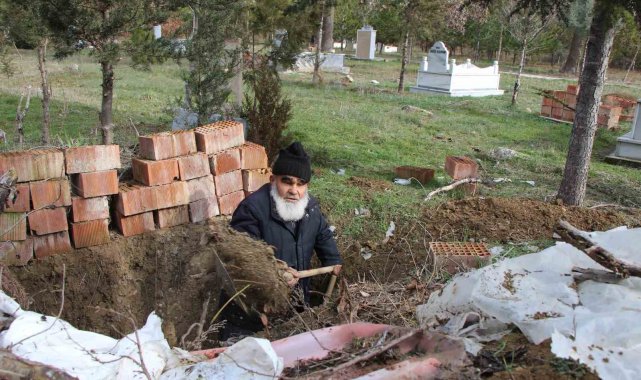 Ölmeden kazdığı mezarına geceleri girip yatıyor
