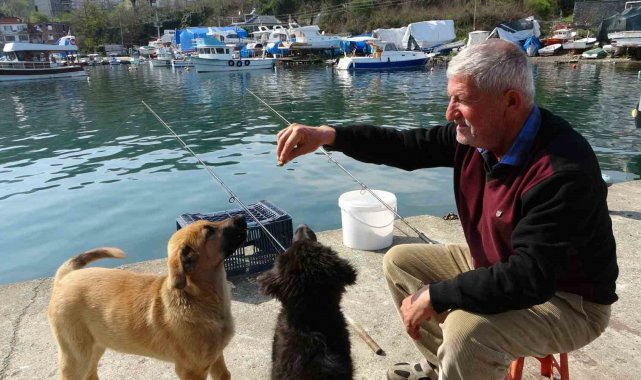 Ordu'nun Perşembe ilçesinde yaşayan 66 yaşındaki Bülent Şahin, emeklilik hayatını olta balıkçılığı ile geçirirken, gittiği bölgelerde sokak köpeklerini de besleyerek örnek bir duyarlılık sergiliyor.