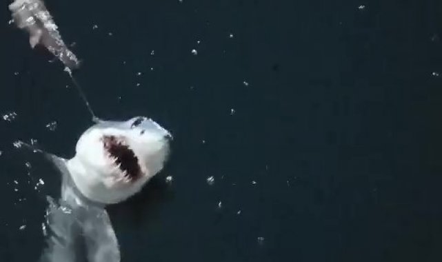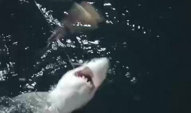 Oltasına takılan köpek balığı yavrusunu arkadaşına nispet yaparak denize bıraktı