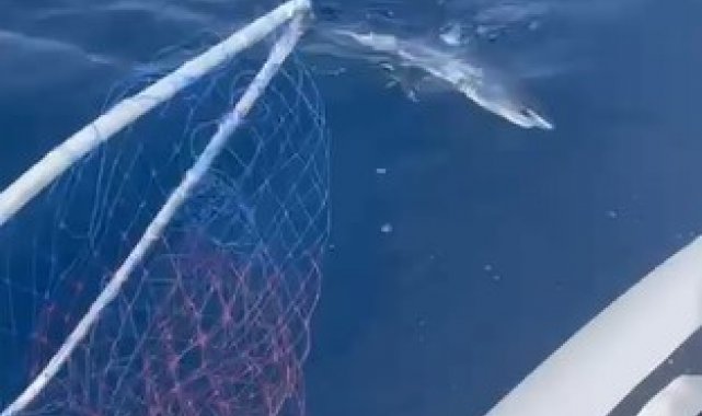 Oltasına takılan köpek balığı yavrusunu nasihat ederek denize bıraktı