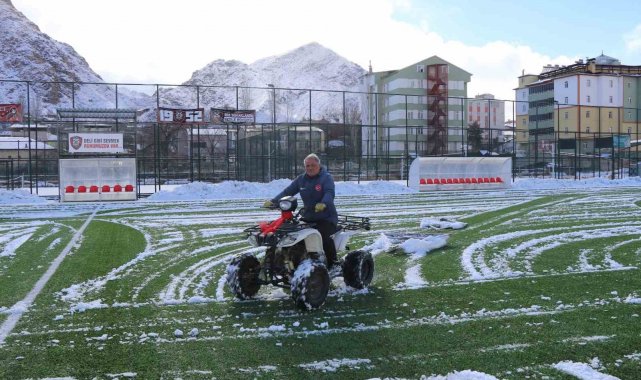 60 yaşındaki İbrahim Kara, bugün yağan kar yağışının ardından Oltu Stadyumu'nun zeminini tek başına temizleyerek görevine olan bağlılığını bir kez daha gösterdi. Mesleğini severek yaptığını belirten Kara, hayatını futbola adadığını ifade etti.