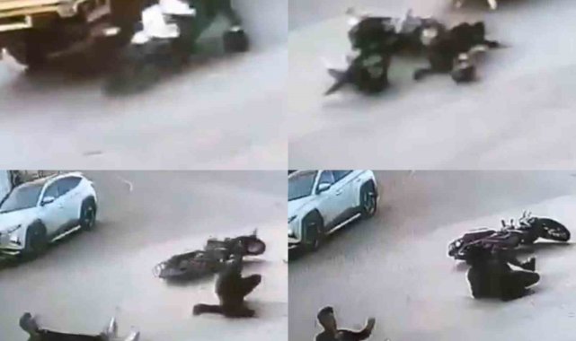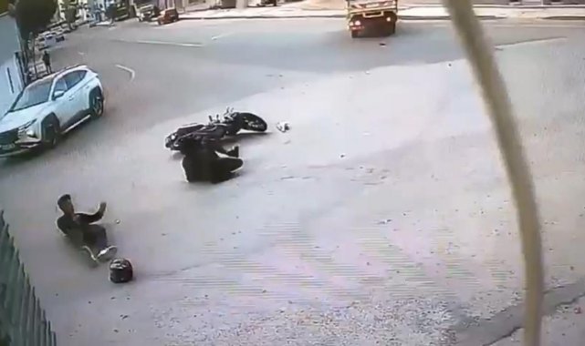 Mersin'in Erdemli ilçesinde motosiklette bulunan 2 kişi kamyonetin altında kalmaktan saniyeyle kurtuldu. Yaralı olarak hastaneye kaldırılan sürücü ve arkadaşının durumunun iyi oluğu öğrenildi. O anlar ise güvenlik kamerasına saniye saniye yansıdı.