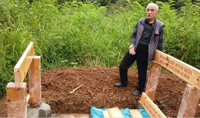 Giresun'un Bulancak ilçesinde yaşayan 71 yaşındaki Tuncel Pekdemir, ölmeden önce yaptırdığı mezarıyla hem doğaya hem de tarım arazilerine dikkat çekti. Pekdemir, mermer mezarların yıllarca kaybolmadığını ve tarım alanlarını daralttığını belirterek, örnek olması için ahşaptan bir mezar yaptırdı.