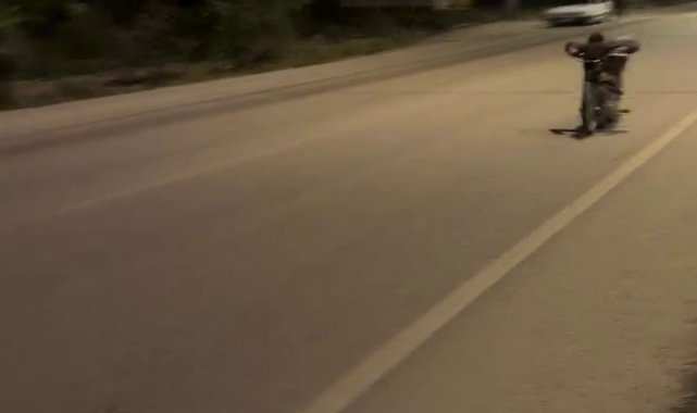 Kırıkhan ilçesinde yaşayan U.B. (25) isimli şahıs, farklı tarihlerde motosikletin üzerinde yolculuk yaptığı anları sosyal medyada paylaştı. Görüntülerde yürekleri ağza getiren ve trafik kurallarını hiçe sayan şahsın tespiti için Hatay Emniyet Müdürlüğü, Bölge Trafik Denetleme Şube Müdürlüğü'nce çalışma başlatıldı. Ekiplerin çalışmasıyla tespit edilen şahsa 6 farklı maddeden cezai işlem uygulandı. Öte yandan şahsın ehliyetine el konulurken, motosikleti trafikten men edilerek otoparka çekildi ve jandarma ekiplerince 'trafiği tehlikeye sokmak' suçundan adli işlem yapıldı.