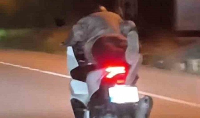 Hatay'ın Arsuz ilçesinde motosikletin üzerine yatarak trafikte seyreden sürücüye 40 bin 514 TL idari para cezası uygulandı.