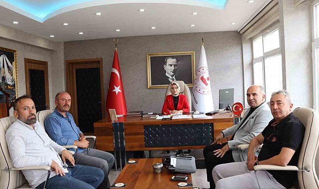 Olur ilçesinde ziyaretçilerini kabul eden Kaymakam Semanur Kalkan, Ormanağzı Mahallesi'nden gelen heyeti makamında ağırladı.