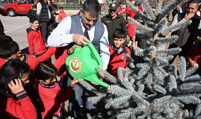 Öğrencilerle birlikte sarıçam, huş ve mavi ladin fidanlarını toprakla buluşturan Vali Çiftçi, çocuklara doğayı korumanın ve çevreye sahip çıkmanın millî bir görev olduğunu anlattı.