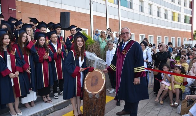 Dönem birincisi Damla Buse Çavuşoğlu, Fakülte Dekanı Prof. Dr. Kaan Gündüz ile dönem kütüğüne birincilik plaketini çaktı. Ardından Diş Hekimliği Fakültesi'nden başarıyla mezun olan öğrencilere hediye ve başarı belgeleri verildi. Mezuniyet töreni, öğrencilerin keplerini havaya atmasıyla son buldu.