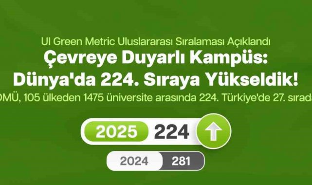 Ondokuz Mayıs Üniversitesi bu yıl 57 basamak yükselerek "Dünyanın En Sürdürülebilir 224'üncü kampüsü" oldu. Doğa ile barışık, ekolojik duyarlılığa sahip bir kampüs hayatına ev sahipliği yapan OMÜ, Türkiye üniversiteleri arasında ise 27'inci sırada yer aldı.