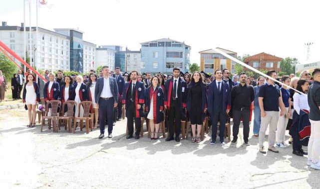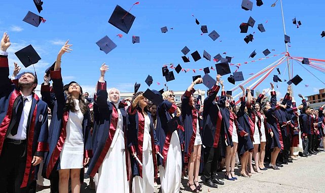 Mezun olan öğrencilerin diploma takdimi sonrasında Fakülte Birincisi Nisanur Çelik, okul yaş kütüğüne ismini çaktı. Son olarak tören alanında toplanan mezunlar, Prof. Dr. Keçeligil eşliğinde mezuniyet andını okuyarak keplerini havaya fırlattı.