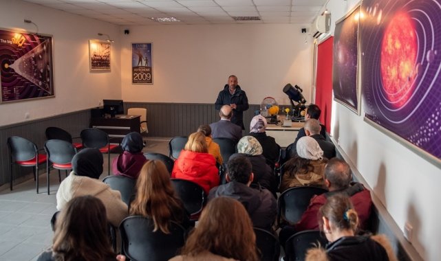 Planetaryum sorumlusu Dr. Selami Kalkan tarafından yapılan sunumda, katılımcılara uzayın derinliklerine uzanan kapsamlı bir anlatım sunuldu. Gezegenlerden yıldızlara, ışık hızından karadeliklere kadar birçok başlıkta yapılan bilgilendirmeler sinevizyon gösterimiyle desteklendi.