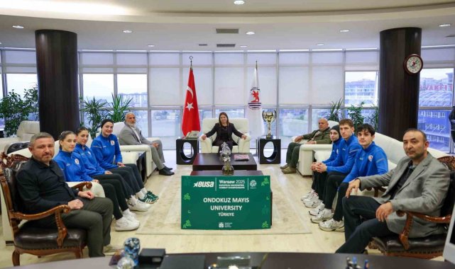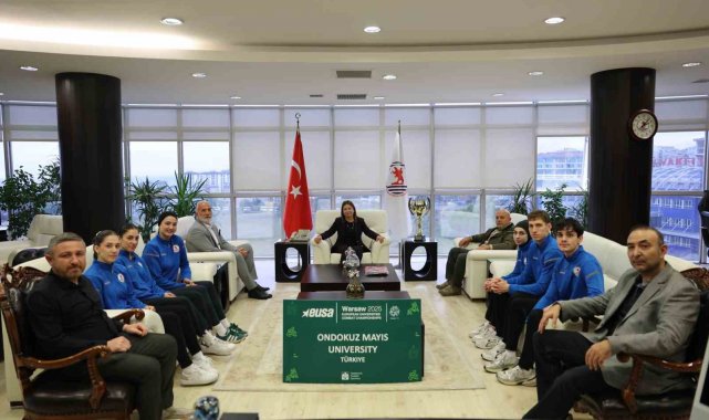 OMÜ Rektörü Prof. Dr. Fatma Aydın, Polonya'nın Varşova kentinde düzenlenen Avrupa Üniversiteler Dövüş Sporları Şampiyonası'nda taekwondo branşında Avrupa şampiyonu olan OMÜ öğrencilerini makamında kabul etti. Ziyarete Yaşar Doğu Spor Bilimleri Fakültesi Dekanı Prof. Dr. Murat Eliöz, Dekan Yardımcısı Prof. Dr. Yıldırım Kayacan, Sağlık Kültür Spor Daire Başkanı Öğr. Gör. Selman Aslan ile antrenörler Sebahattin Yaşar ve Engin Keskin de katıldı. Rektör Aydın, elde edilen büyük başarı nedeniyle sporcuları tebrik ederek, OMÜ'nün spor alanındaki gücünü bir kez daha gösterdiğini belirtti.