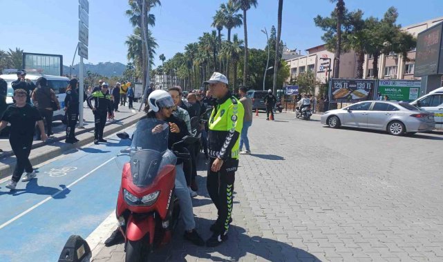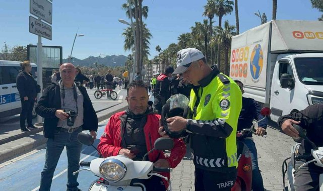 Marmaris Kaymakamı Nurullah Kaya ve İlçe Emniyet Müdürü Selçuk Özdemir'in katılımıyla Atatürk Meydanı'nda gerçekleştirilen uygulamada, yaklaşık 100 kişiye belge ve kask denetimi yapıldı. Kask takmayan sürücülere ceza uygulanırken, Marmarisli iş insanlarının desteğiyle temin edilen 100 kask da bu kişilere ücretsiz olarak dağıtıldı.