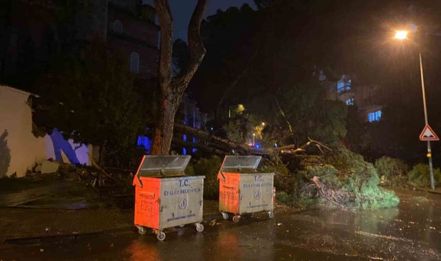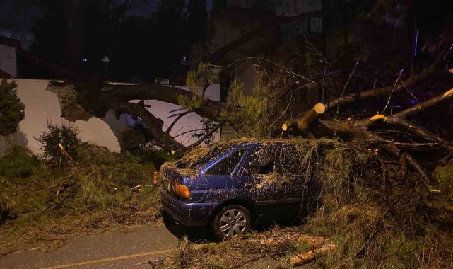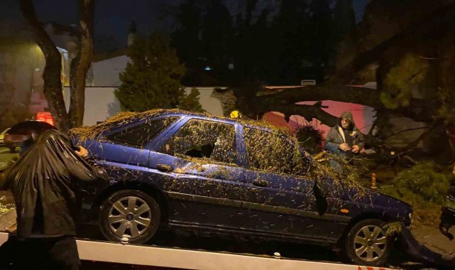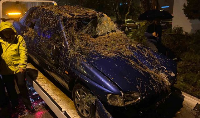 Aydın'ın Efeler ilçesinde şiddetli yağmur ve rüzgarın etkisi ile bir ağaç cami bahçesinin duvarını yıkarak seyir halindeki bir otomobilin üzerine devrildi. Araçta bulunan 2 kişi yaralandı.