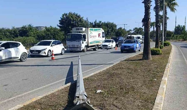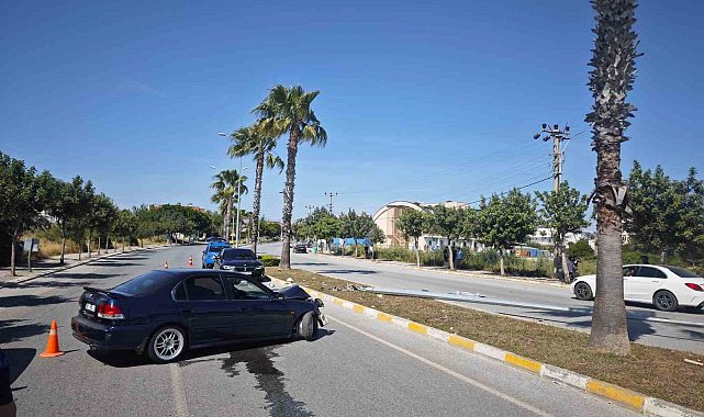 Antalya'nın Manavgat ilçesinde direksiyon hakimiyetini kaybeden araç sürücüsü önce refüje, ardından aydınlatma direğine çarparak durabildi.