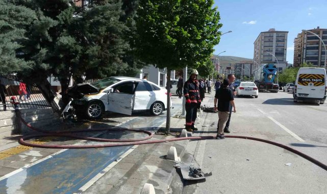 İhbar üzerine olay yerine polis ve itfaiye ekipleri sevk edilirken, itfaiyenin müdahalesiyle yangın kısa sürede kontrol altına alınarak söndürüldü. Her iki araçta da maddi hasarın meydana geldiği kaza anı çevredeki güvenlik kameralarına yansırken, olayla ilgili inceleme başlatıldı.