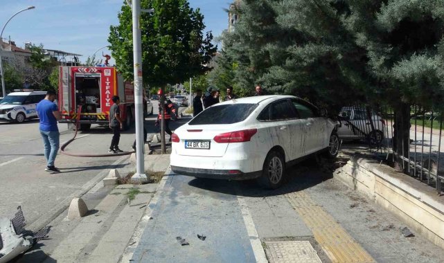 Malatya'da kontrolden çıkan bir otomobil, önce başka bir araca ardından site duvarına çarptı. Kazanın ardından alev alan araç paniğe yol açarken, olayda şans eseri yaralanan olmadı.