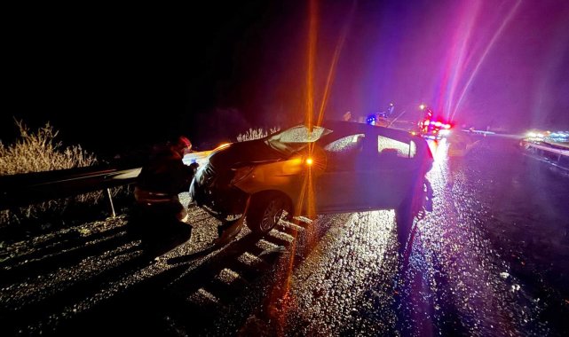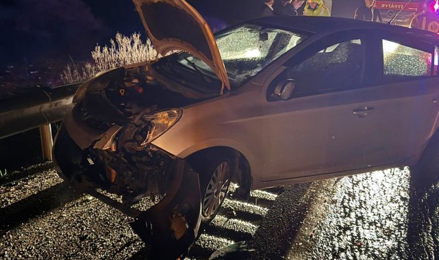 Manisa'nın Kula ilçesinde yağışlı havanın etkisiyle kayganlaşan yolda kontrolden çıkan otomobil önce refüje ardından yol kenarındaki bariyerlere çarptı. Kazada 2 kişi yaralandı.