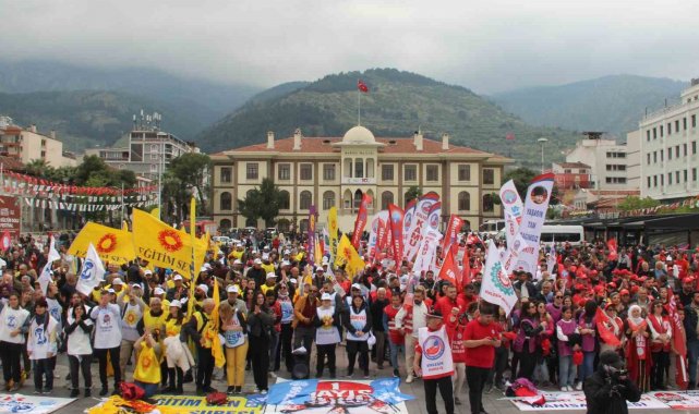 Manisa'da 1 Mayıs Emek ve Dayanışma Günü işçi, memur ve emekli sendikaları ile siyasi partilerin düzenlediği yürüyüşünün ardından Cumhuriyet Meydanında düzenlenen programla kutlandı.