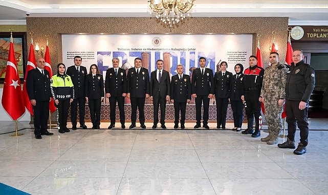 Türk Polis Teşkilatı'nın Kuruluşu'nun 181. yılı münasebetiyle, İl Emniyet Müdürü Onur Karaburun, Polis Meslek Eğitim Merkezi Müdürü Mehmet Özdemir ve beraberindeki teşkilat mensupları, Vali Aydın Baruş'u ziyaret etti. Vali Baruş, köklü geçmişiyle milletin huzur ve güvenliği için fedakârca görev yapan Türk Polis Teşkilatı'nın yıl dönümünü kutladı.