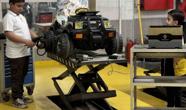 Bursa'da 23 Nisan Ulusal Egemenlik ve Çocuk Bayramı'ndan önlüğü giyen minikler, oto tamir ustalığına soyundu. Satış sorumluluğundan ekspertize kadar birçok alanda görülen miniklerin videosu, izleyenlerin yüzünü gülümsetti.