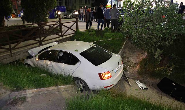 Önündeki araca çarpan otomobil su kanalındaki köprüye saplandı: 2 yaralı