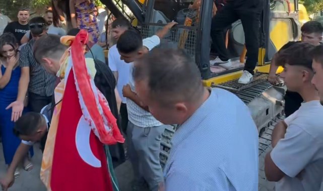 Denizli'nin Güney ilçesinde düzenlenen düğün töreni renkli anlara sahne oldu. Gelin alma töreninin ardından damadın arkadaşları, damada iş makinasını yağlatarak eğlendiler.