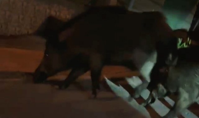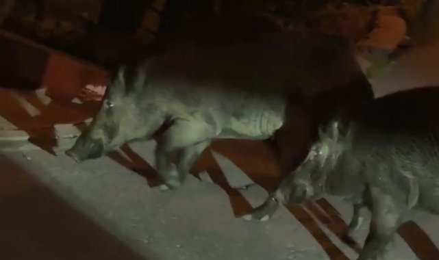 Akşam saatlerinde ilçenin Ortayılmazlar Mahallesi Kanlıkuyu Sokak üzerinde araçlarıyla ilerleyen vatandaşlar, yaban domuzları ile karşılaştı. Vatandaşlar, sokaklarda yiyecek arayan yaban domuzlarını cep telefonu kamerasıyla kaydetti. Vatandaşların kaydettiği görüntülerde, domuzların evlerin yakınında uzun süre dolaştığı ve yiyecek bulmaya çalıştığı anlar yer aldı. Domuzların kalabalık bir şekilde mahalle aralarında dolaşması ilginç görüntüler oluşturdu. Şehir hayatına iyice alışan yaban hayvanlarının sakin tavırları dikkat çekerken, mahalle sakinleri domuzların sürü halinde sürekli aynı bölgelere geldiğini ifade ettiler.