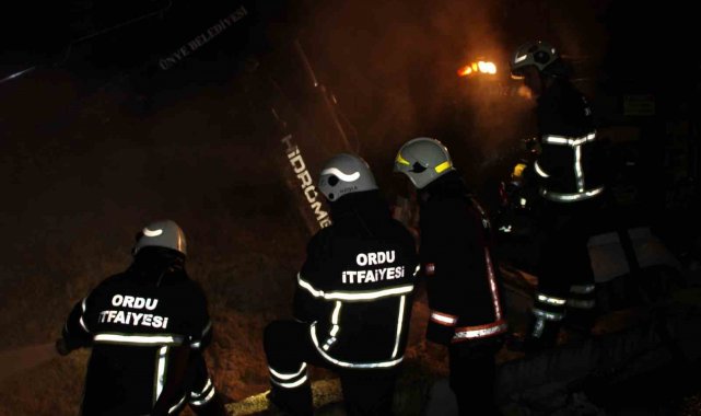 Olay, ilçenin Çatalpınar Mahallesi Karapınar Sokak üzerinde meydana geldi. Edinilen bilgilere göre, Ali Dalgıç'a ait ahırda henüz belirlenemeyen bir nedenle bir anda alevler yükselmeye başladı. Çatı katında ve samanlık bölümünde başlayan yangını, ahır sahiplerinin yangını fark etmesiyle bölgeye çok sayıda itfaiye, jandarma ve sağlık ekibi sevk edildi. Ordu Büyükşehir Belediyesi Ünye İtfaiye Grup Amirliği ekipleri, büyüyen alevlere müdahale etti. Yaklaşık 2 saat süren yoğun çalışma sonucunda yangın kontrol altına alınarak söndürülürken, soğutma çalışmaları devam etti.