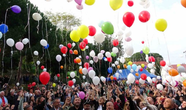 Pasta kesiminin ardından yüzlerce balon gökyüzüne bırakıldı.