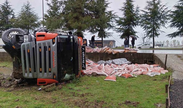 Ordu'da besi yemi yüklü tır devrildi: 1 yaralı